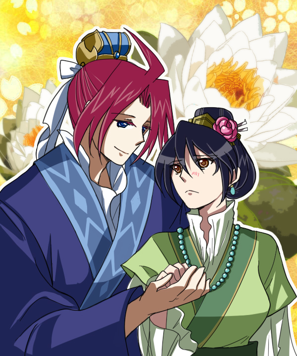 「ゼロしいで彩雲国物語の女官と武官の格好(珠翠と楸瑛)」 彩雲国物語は名前だけ知っていたんですが、調べてびっくり。 声優さんが珠翠がしいなで、楸瑛はユアンの方だったんですね!ちょっと面白かったですv コスプレしてちょっと素直な二人(?) 背景は素敵な睡蓮をお借りしましたー(`・ω・´) リクエストTOPへ >> サイトTOPへ