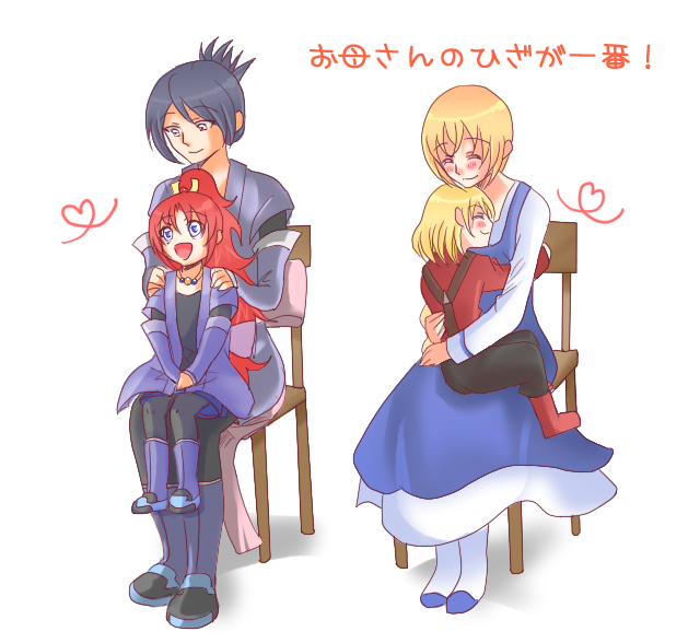 「お母さんのひざが一番!」 息子君はお母さんにべったり。娘さんはお行儀よくちょこんと。 二人の性格が出てるといいな! 2月のバレンタイン企画の時にあやめさんから候補としていただいた 「お父さん(おかあさん)のひざの上が定位置!」 が描きたくなったので描かせていただきました〜。 top