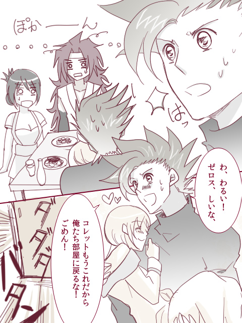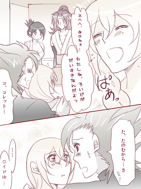 お酒でめろめろになってロイド君への気持ちにストッパーがかからなくなったコレットちゃんでした(*´v`*)