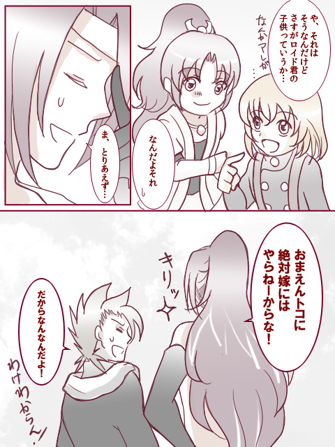 ←back お父さん、気が早すぎですよ! 〜こんにちは〜 ということで、ムスコ君とムスメさんの出会いでした。 テセアラではともかく、赤い髪ってイセリアらへんでは目立ちそうですな。 ムスコ君は確実におとんの血を引いてそうなのよね!様々な意味でね!(`・ω・´)キリッ ベタだけど、ベタな出会いこそ、記憶に残る出会い。 2人が今後も仲良くしてくれるといいなと思いつつ。