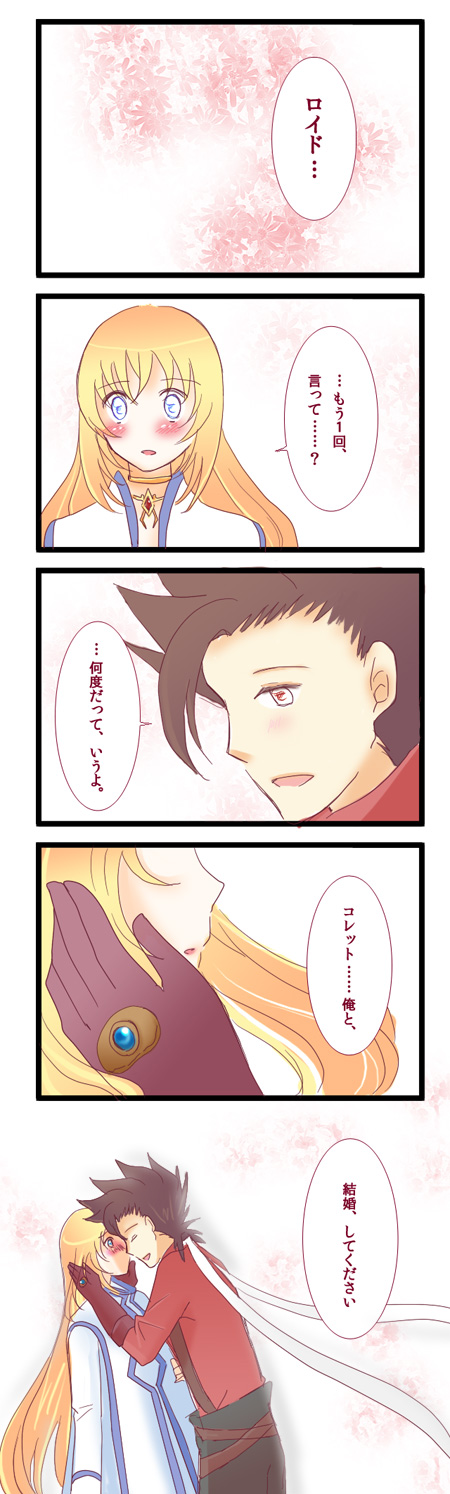 ロイド君は「俺がおまえを守る!」とプチプロポーズ的なことを現段階ですでにいっているので、 正式にする時はやっぱりオーソドックスにこんな感じかなと思います(`・ω・´) 構想はあるので、いつかがっつりプロポーズ話は描いてみたいですね〜。
